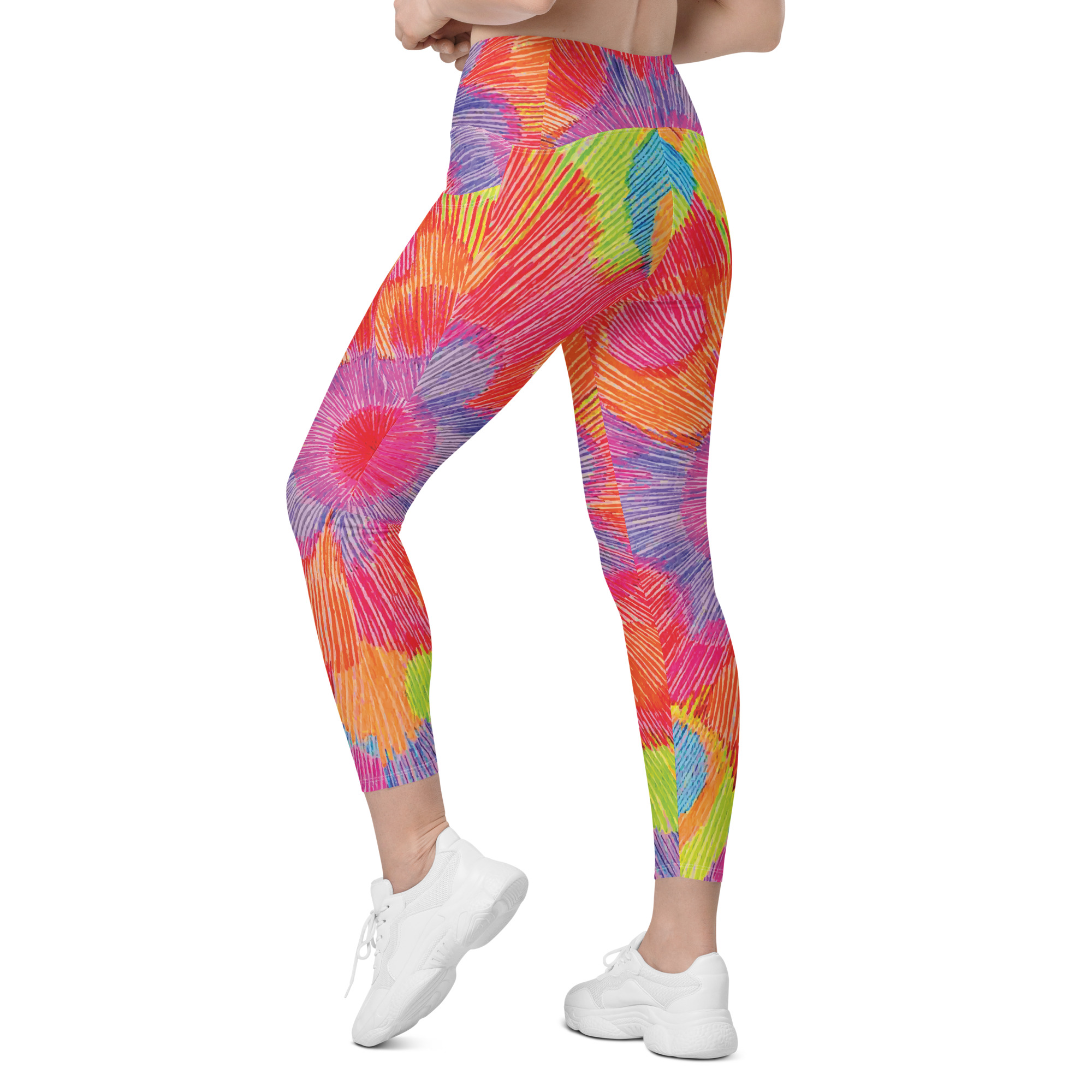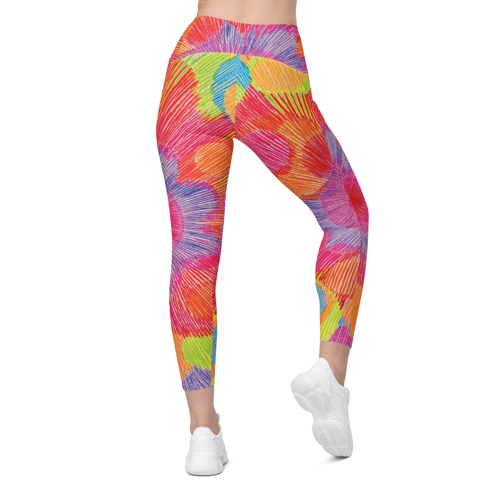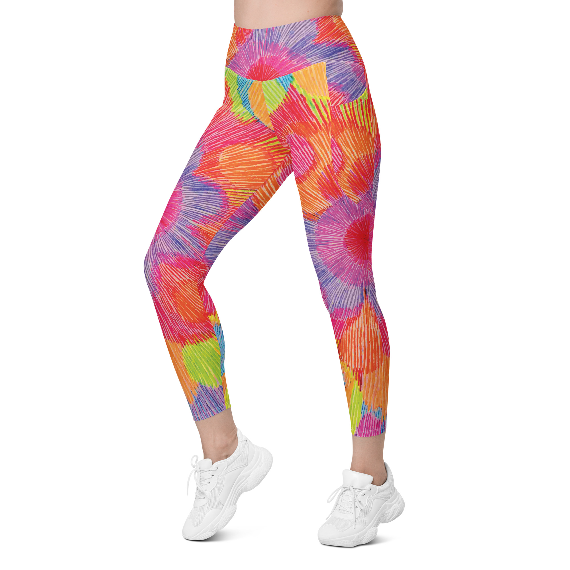 Step into joyful motion with the Colour Echo leggings with pockets — a wearable pulse of color, vibration, and radiant becoming. With blooming rings of vibrant energy that spiral outward, these leggings celebrate movement as a form of expression. Whether you’re stretching, flowing, or simply being, they’re designed to support you with comfort, color, and confidence.