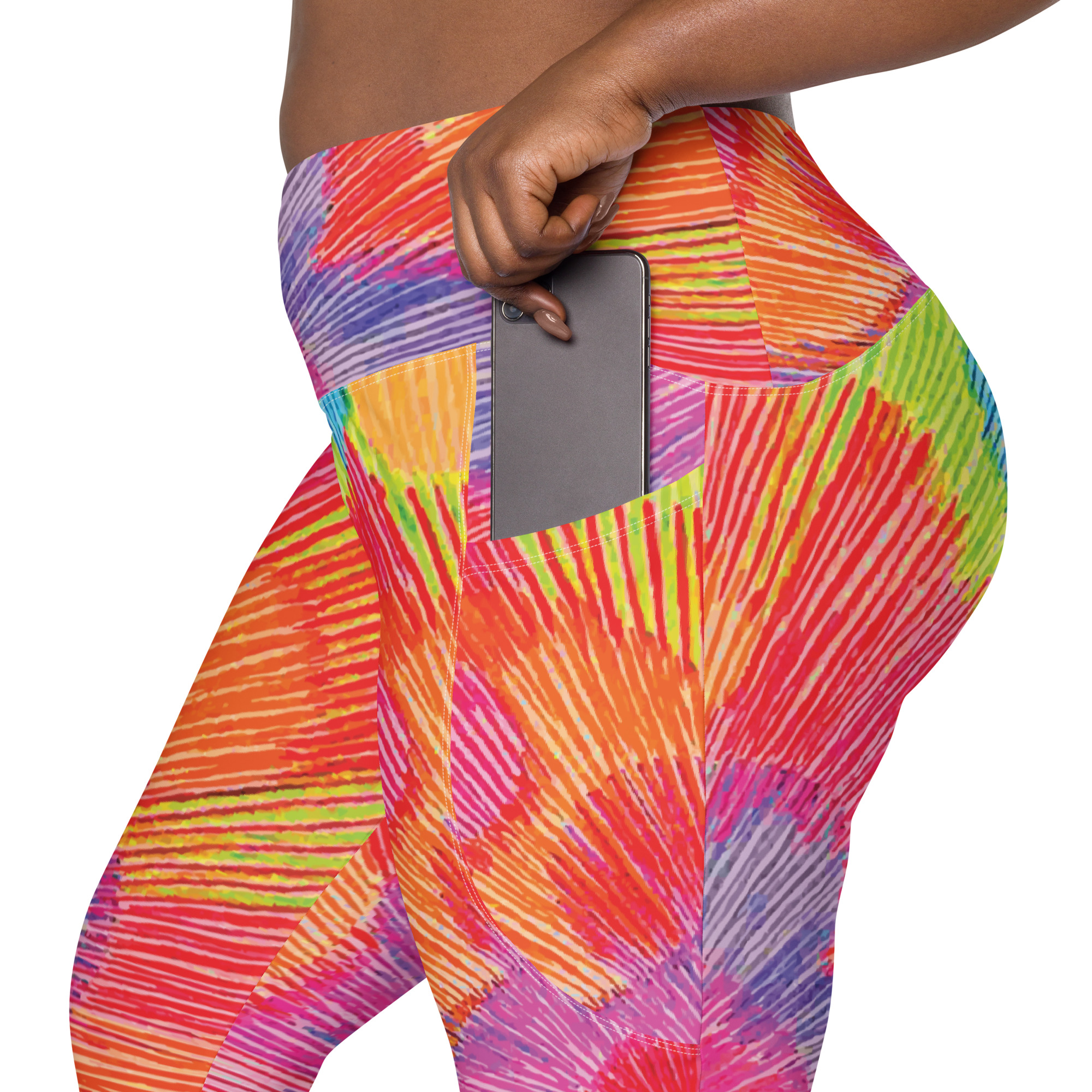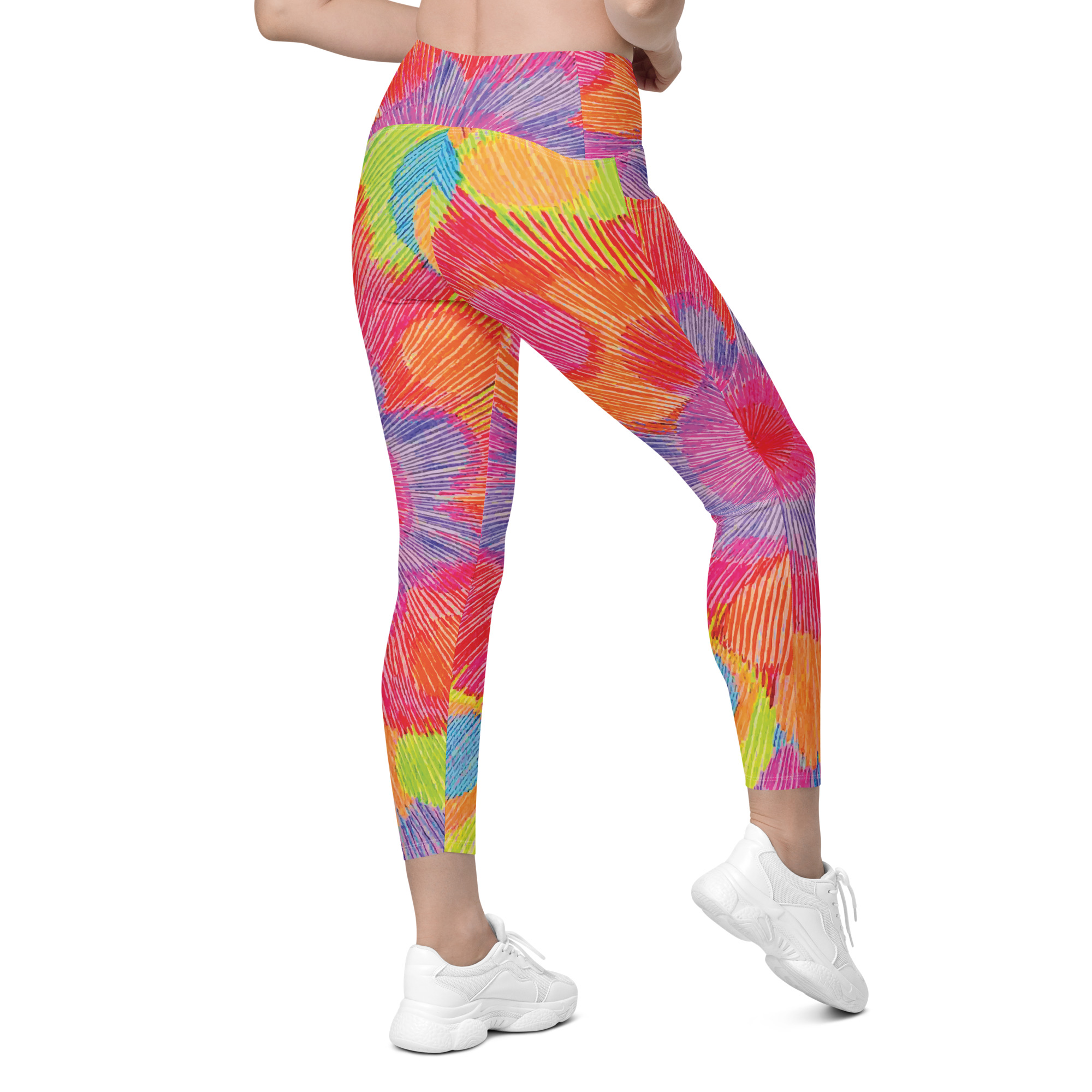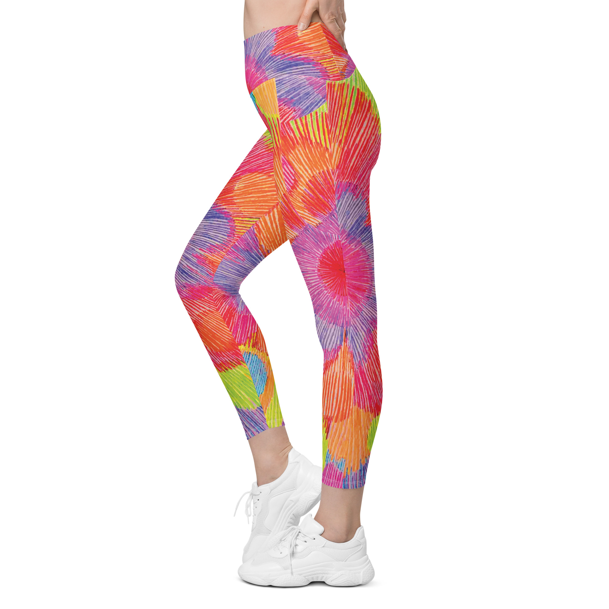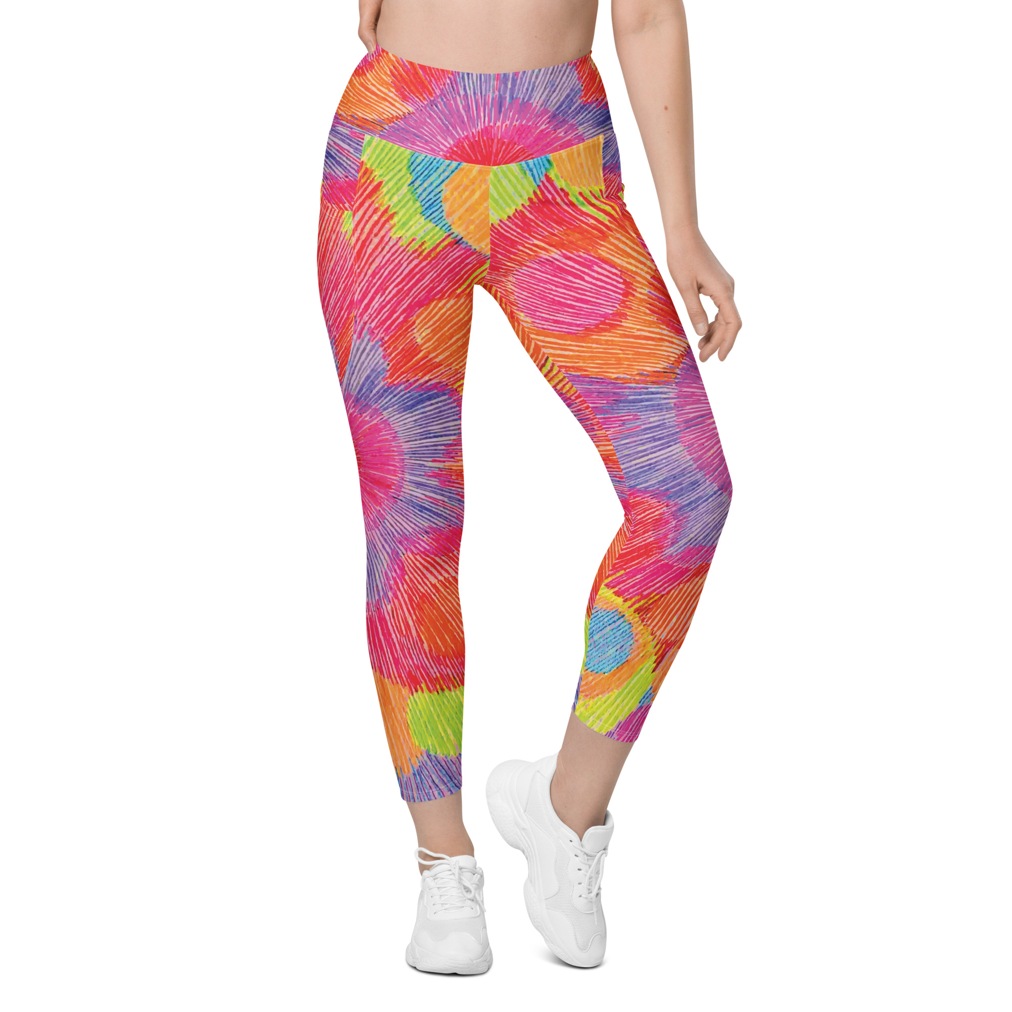 Step into joyful motion with the Colour Echo leggings with pockets — a wearable pulse of color, vibration, and radiant becoming. With blooming rings of vibrant energy that spiral outward, these leggings celebrate movement as a form of expression. Whether you’re stretching, flowing, or simply being, they’re designed to support you with comfort, color, and confidence.