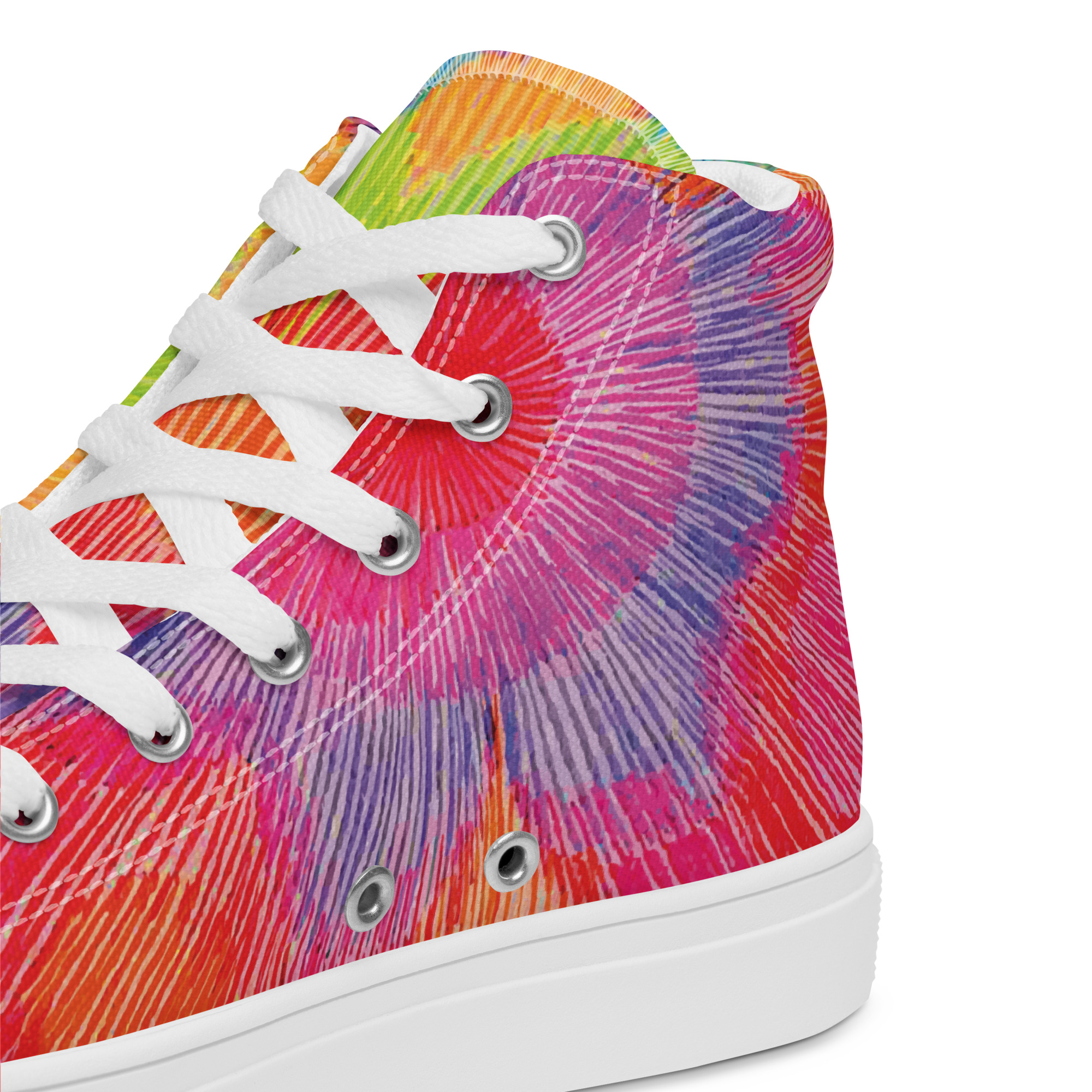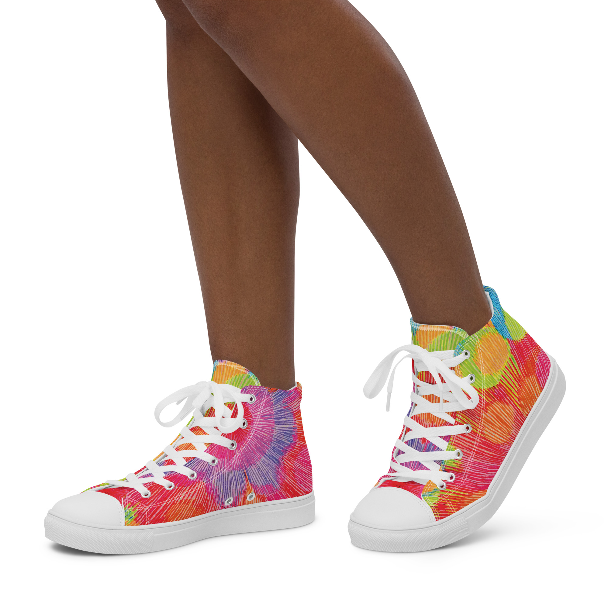 Make a bold statement in the Colour Echo high-top shoes — a radiant fusion of color, energy, and movement. Designed to rise with you, these shoes wrap your steps in blooming rings of joy and vibrant presence. Structured yet expressive, they echo the voice of fearless becoming with every stride.