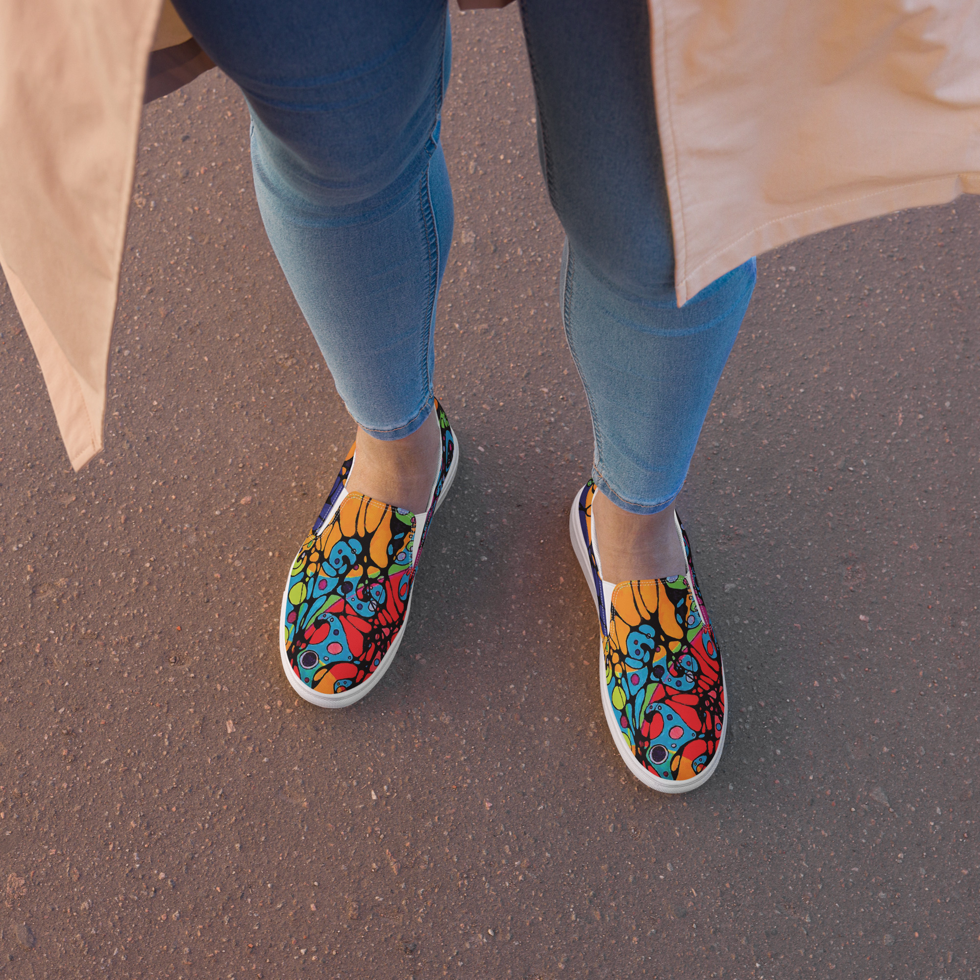 Step into wholeness with the Connections slip-on shoes — where comfort meets meaning. Designed with a pattern that echoes luminous pathways and the tender strength of healing, these shoes embody the quiet power of reconnection. Lightweight, flexible, and easy to wear, they carry the spirit of becoming — between each step, a reminder that what was once separate can move together in harmony.
