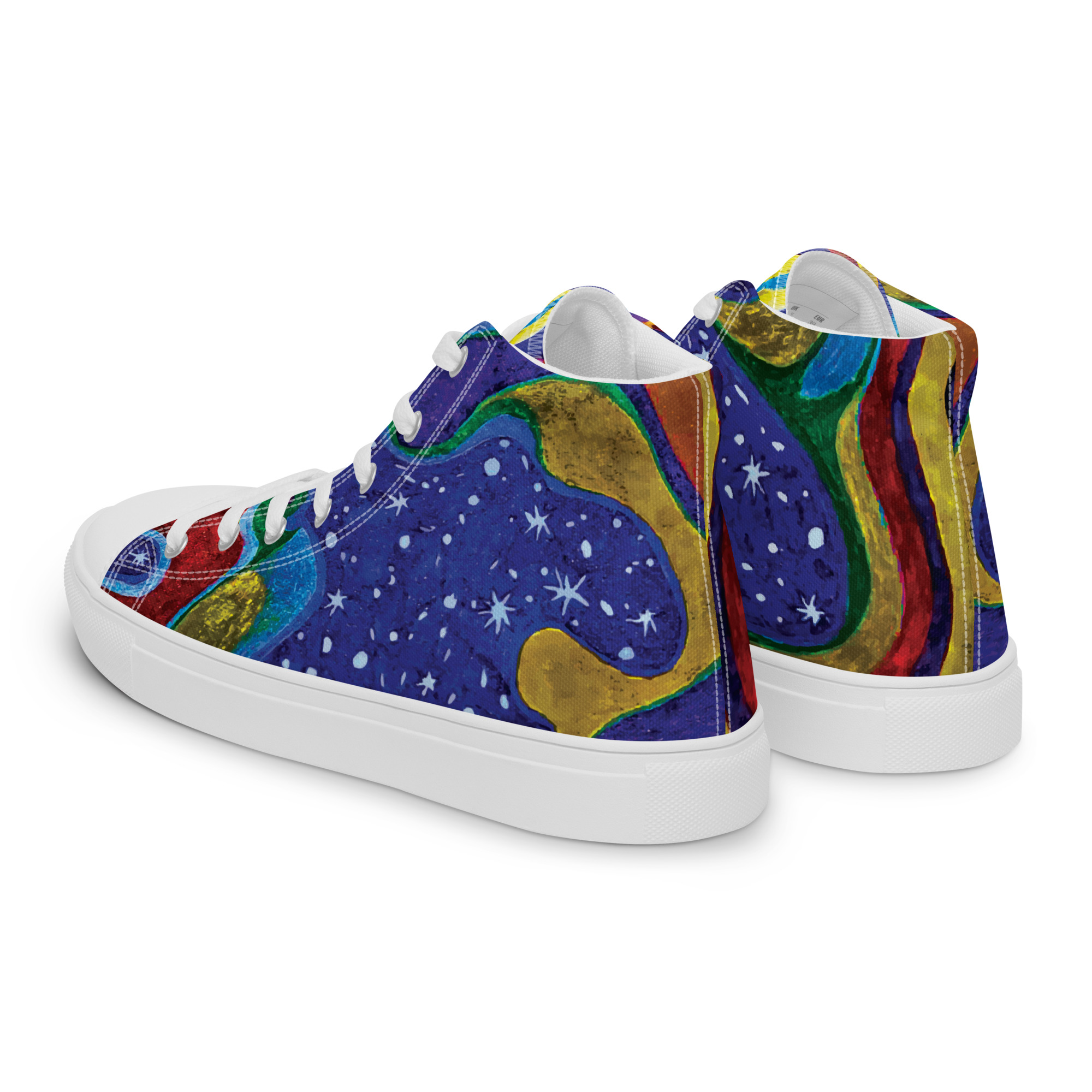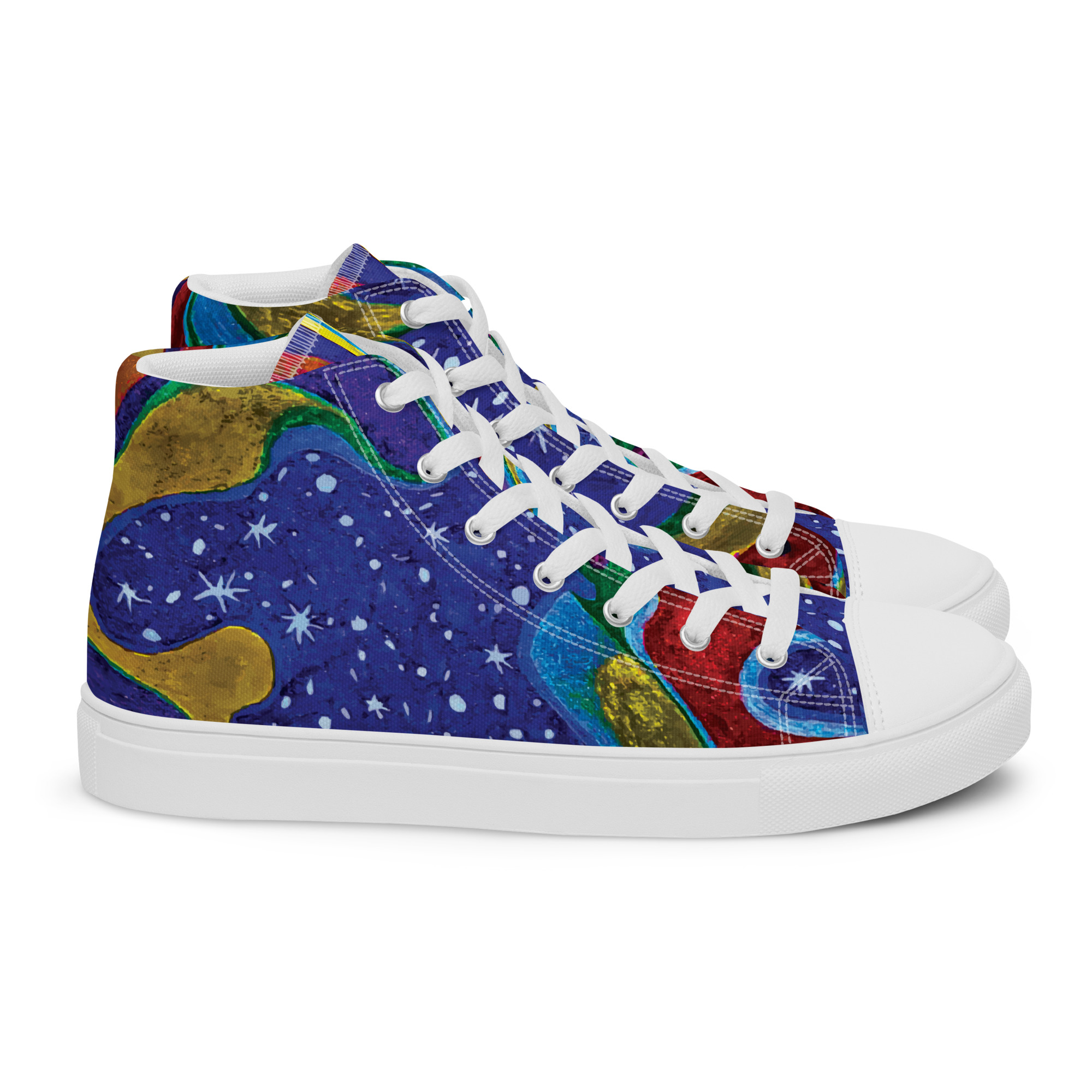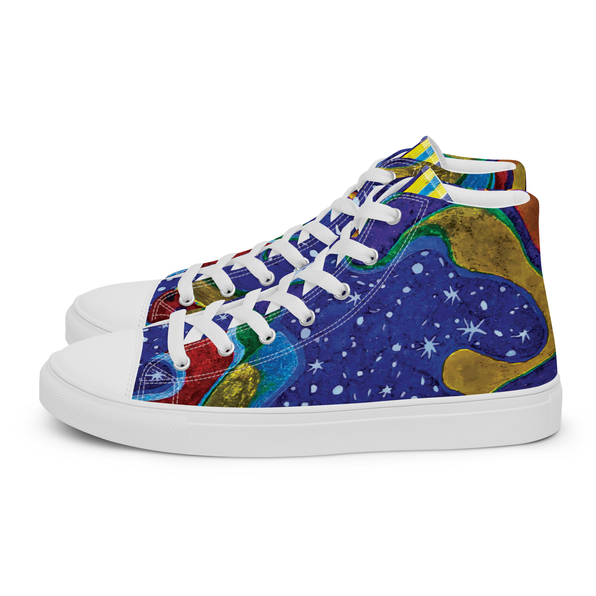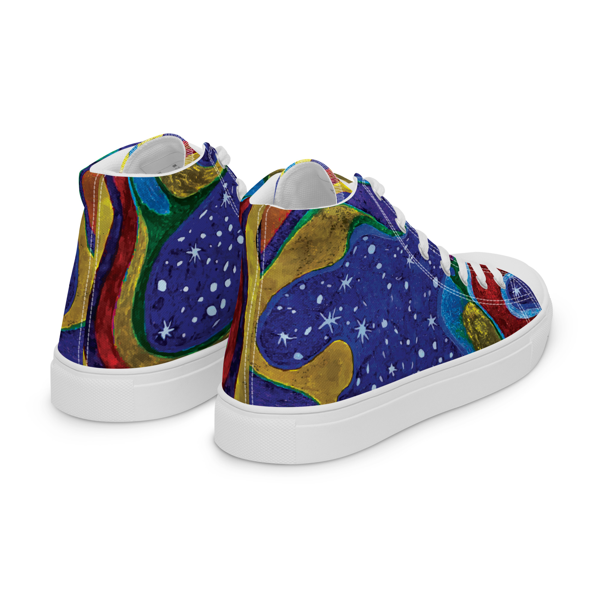 Lace up in stardust with the Dancing Stars high-top shoes — a blend of cosmic calm and feminine strength. With soft constellations and deep celestial hues, these shoes hold your steps in quiet elegance. Supportive, striking, and full of grace, they turn every walk into a soft orbit around your truest self.