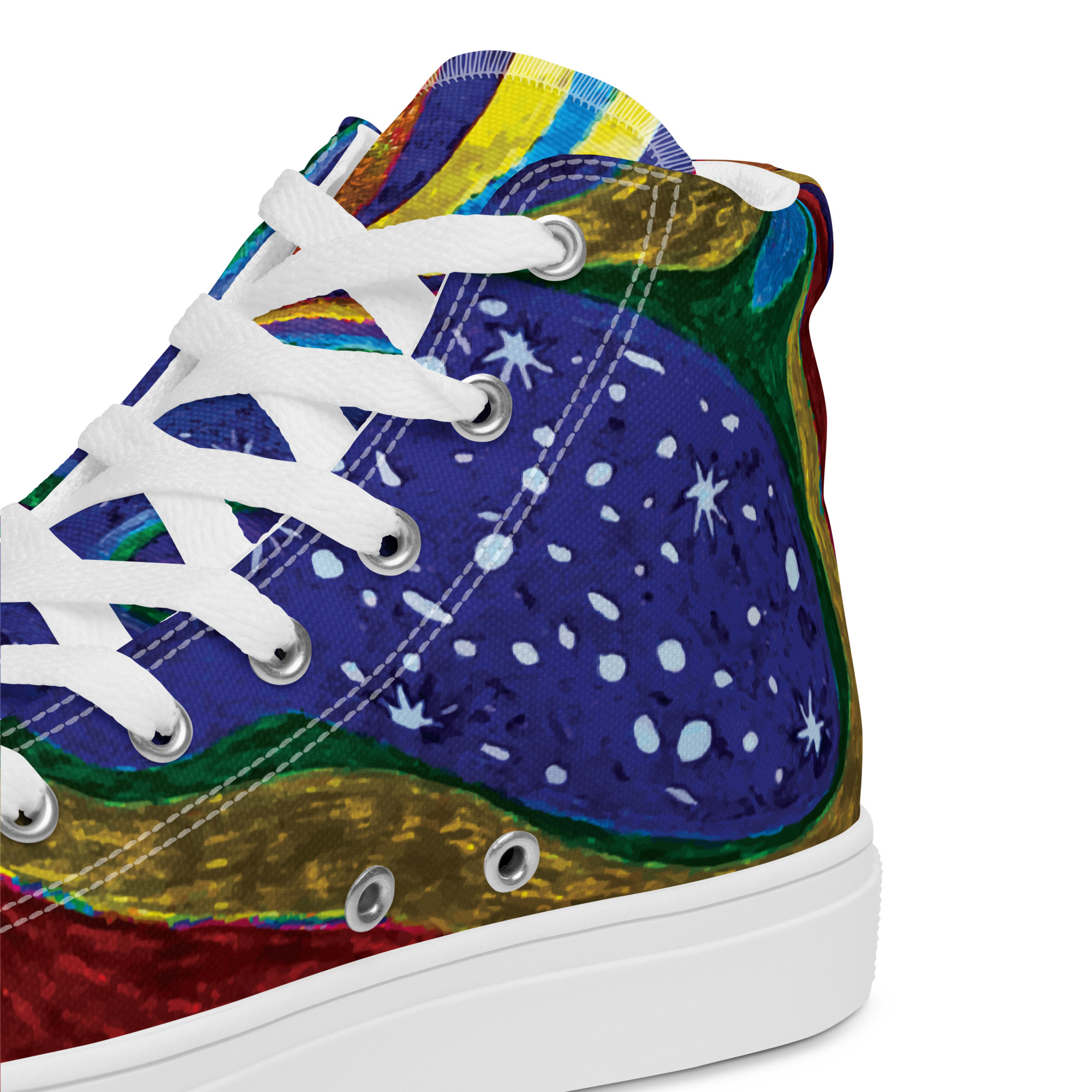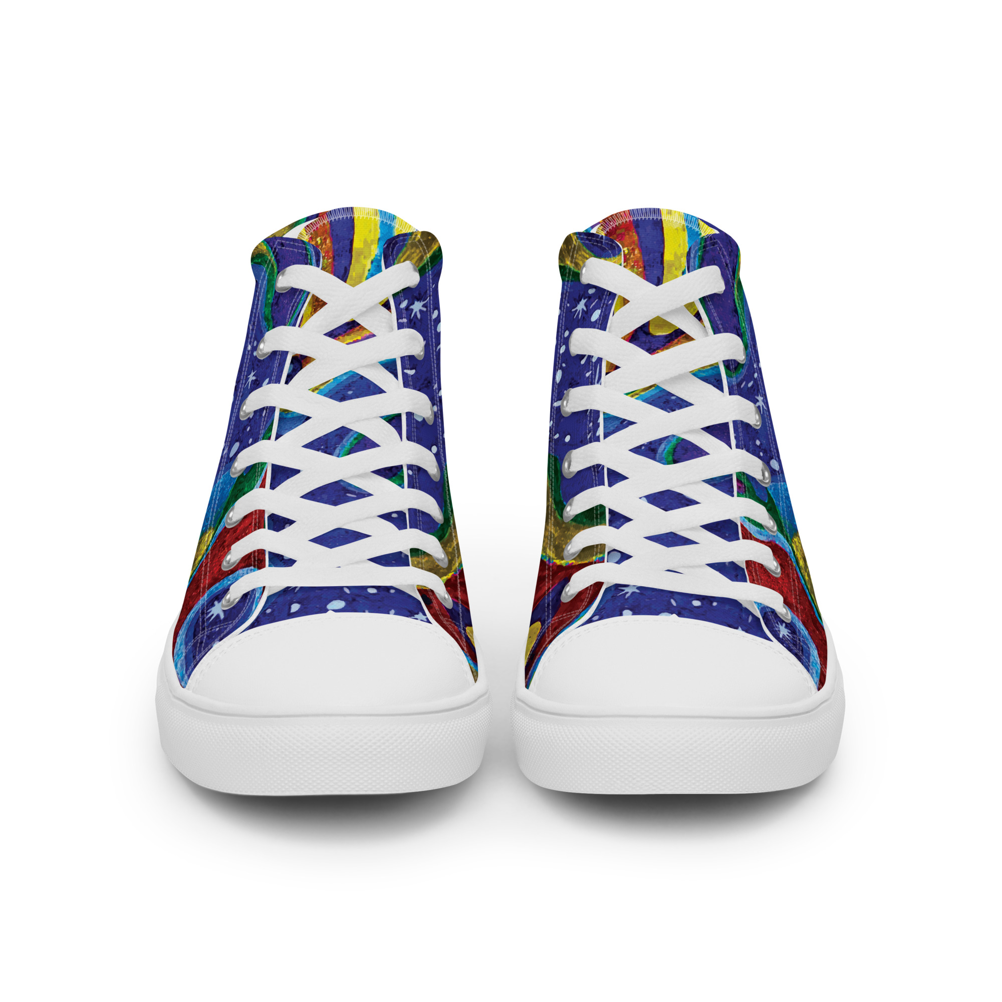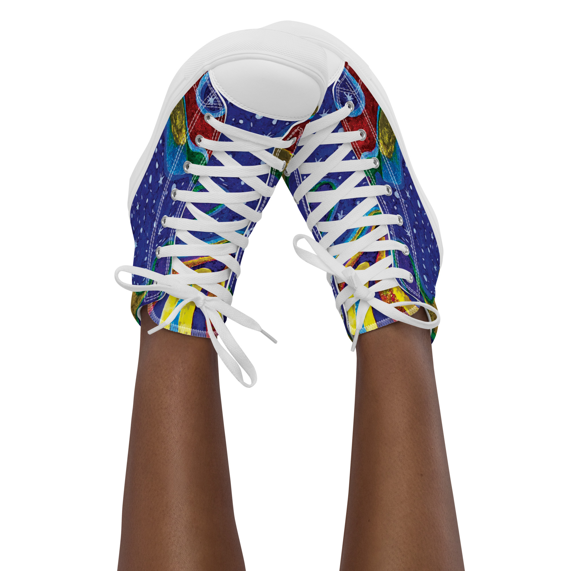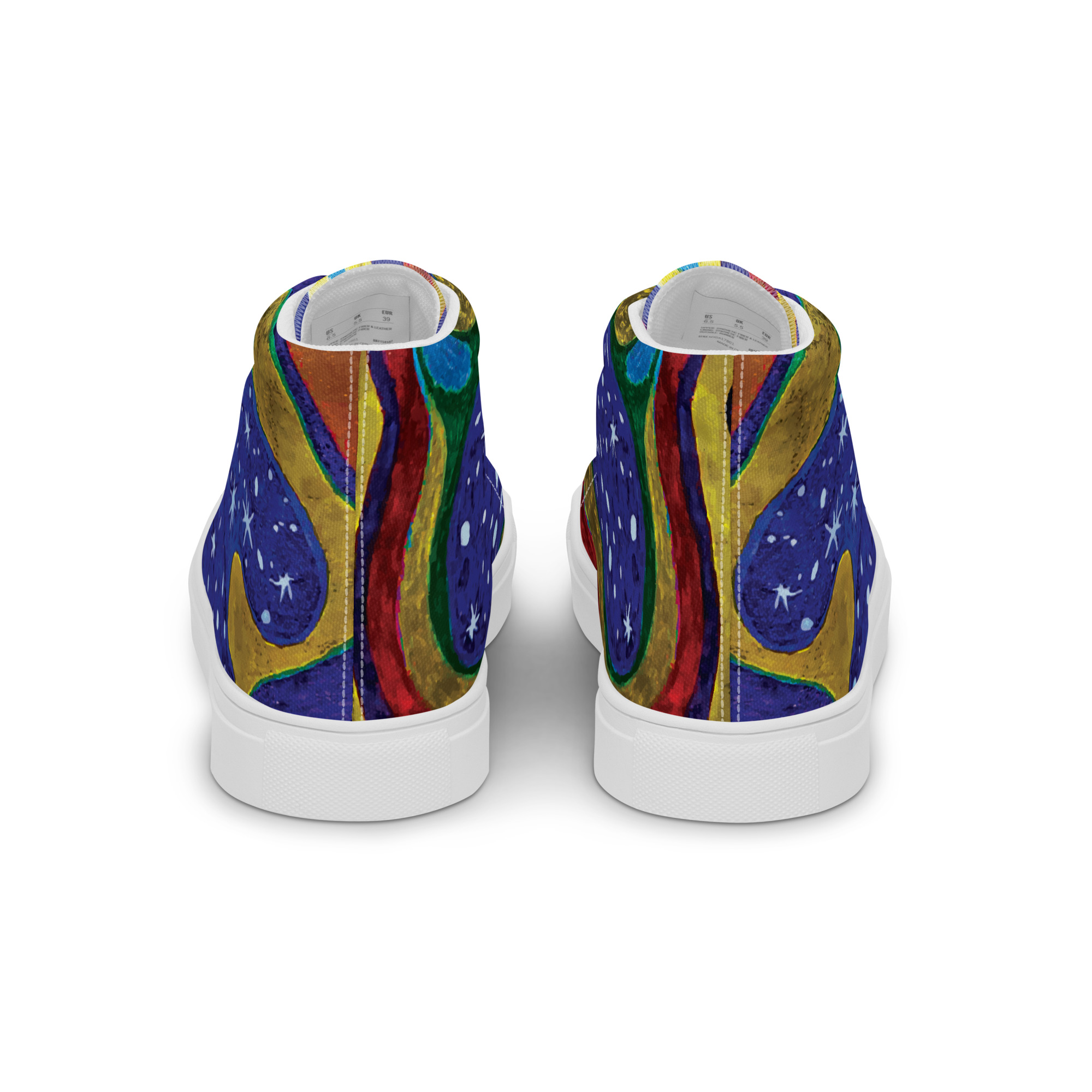 Lace up in stardust with the Dancing Stars high-top shoes — a blend of cosmic calm and feminine strength. With soft constellations and deep celestial hues, these shoes hold your steps in quiet elegance. Supportive, striking, and full of grace, they turn every walk into a soft orbit around your truest self.